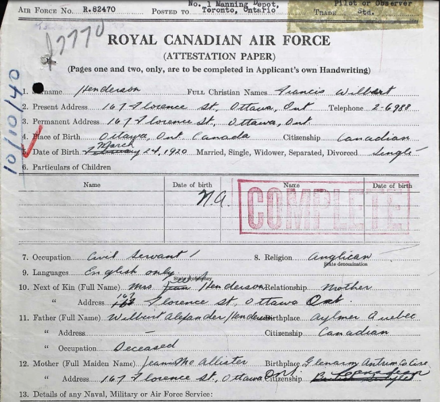 Digital gallery of Pilot Officer Francis Wilbert Henderson