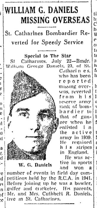 He was one of 53 Canadians who lost their lives on July 4-5, 1943. They were travelling in convoy KMS-18B on their way to Sicily, Italy, for Operation Husky. Three ships (City of Venice, St. Essylt and Devis) were torpedoed and sunk by German u-boats in the Mediterranean Sea near Alger, Algeria.