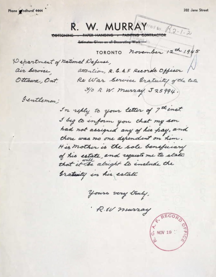 Digital gallery of Flying Officer Robert Wallace Murray