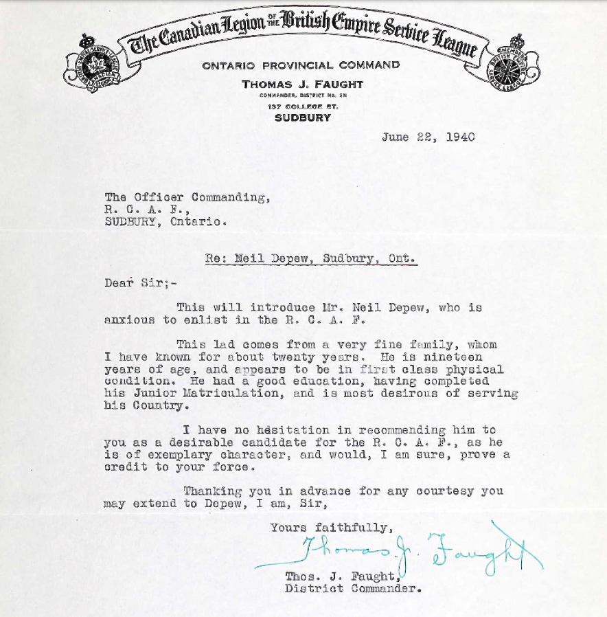 Brother of Flight Lieutenant Douglas George Depew, who died while serving with the Royal Canadian Air Force.