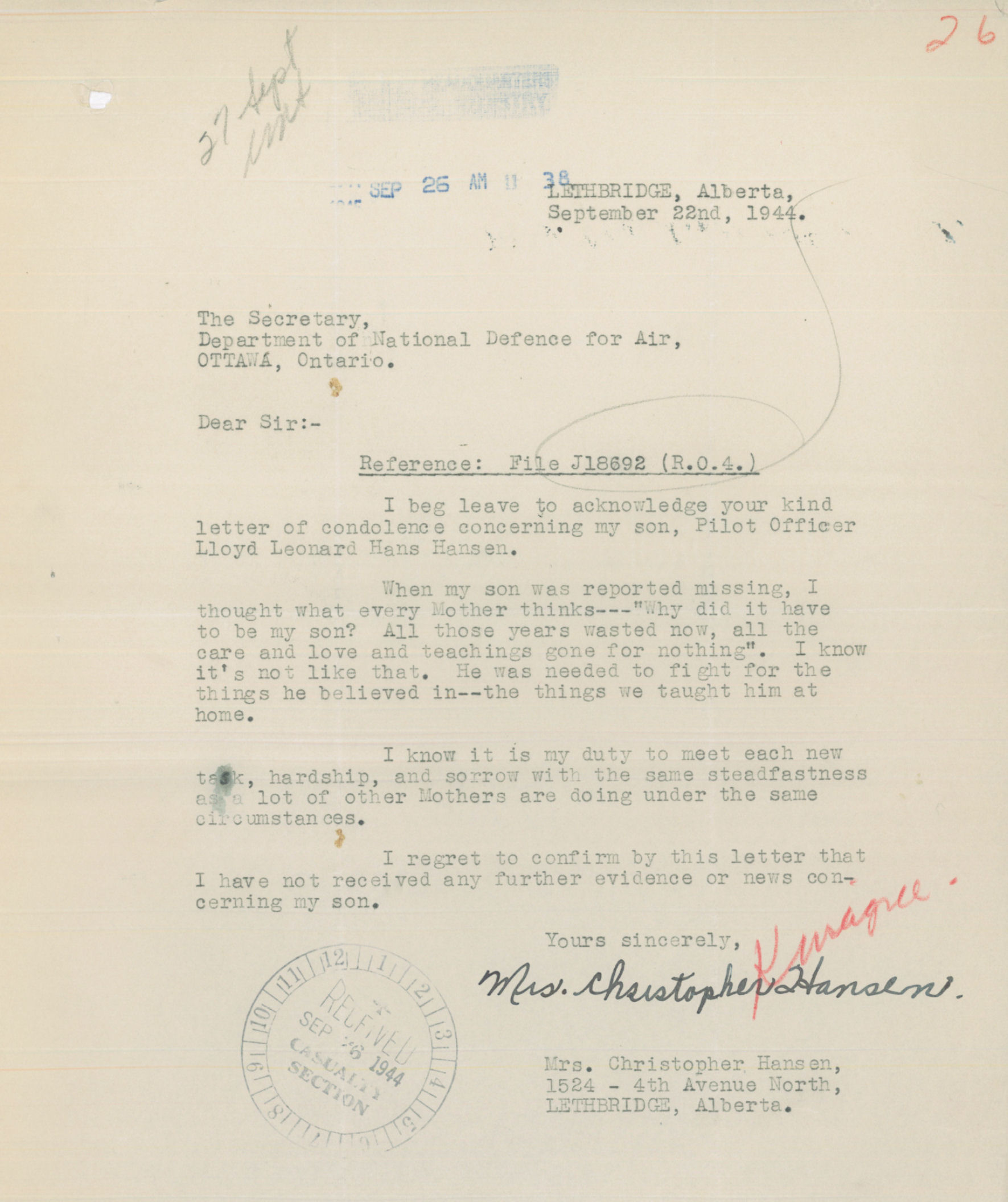 Digital gallery of Pilot Officer Lloyd Leonard Hans Hansen