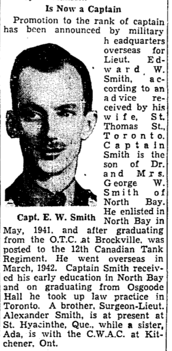 Son of Dr. George W. Smith and Eva Smith; husband of Helen M. Smith, of Toronto, Ontario.
