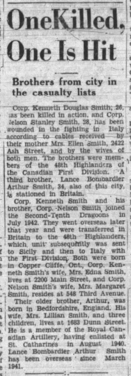 Son of Ellen Smith; husband of Edna Maud Smith, of Niagara Falls, Ontario.