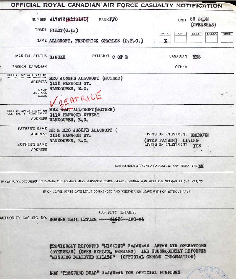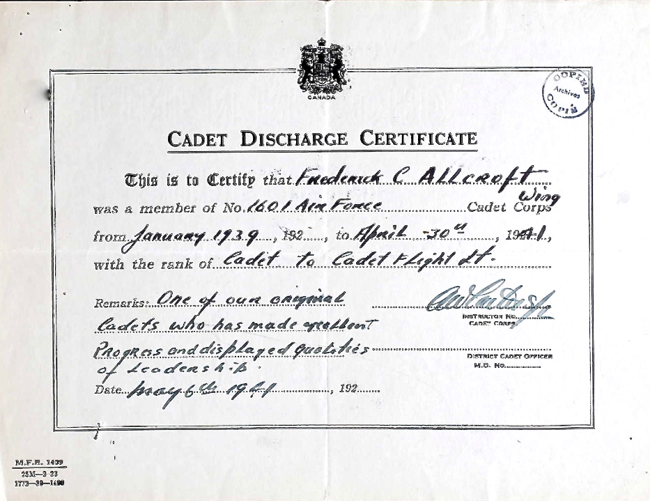 Digital gallery of Flying Officer Frederick Charles Allcroft