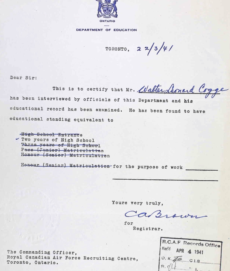 Son of Alfred and Alice Cogger of Prince Albert, Saskatchewan. Husband of Verna Mae Scriver of Hastings, Ontario whom he married in April of 1942. They had one daughter, Lynne Marie.
