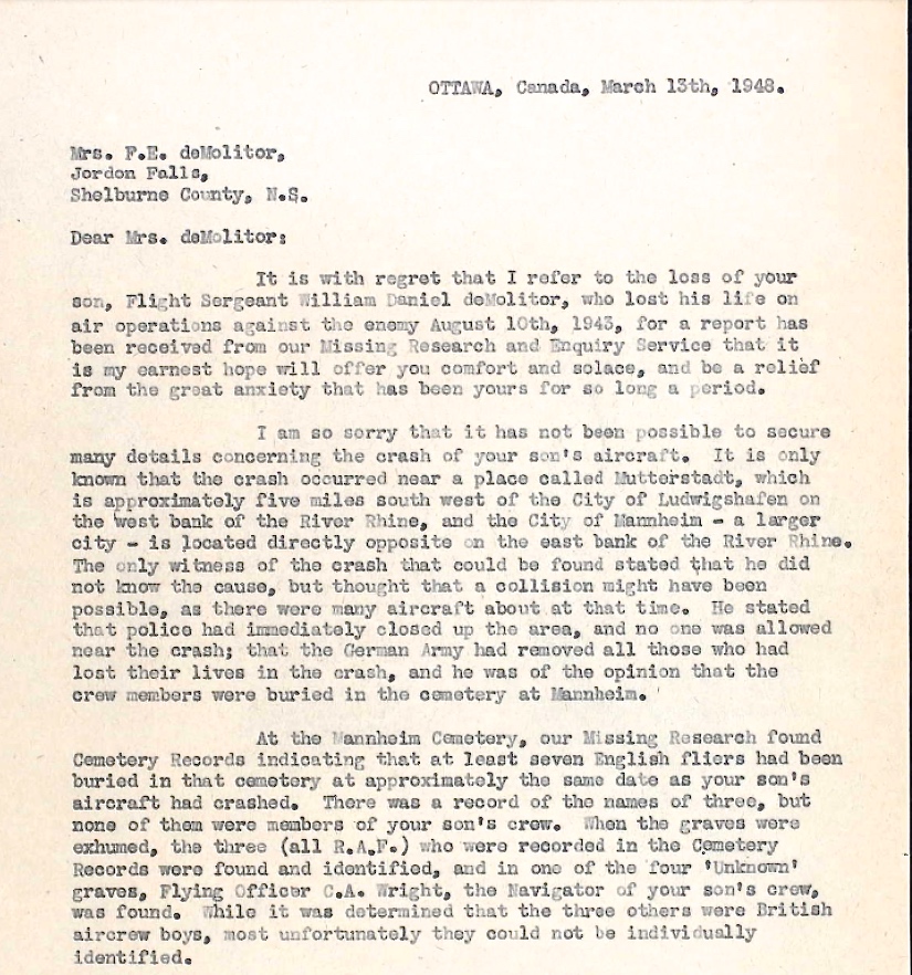 Digital gallery of Flight Sergeant William Daniel De Molitor
