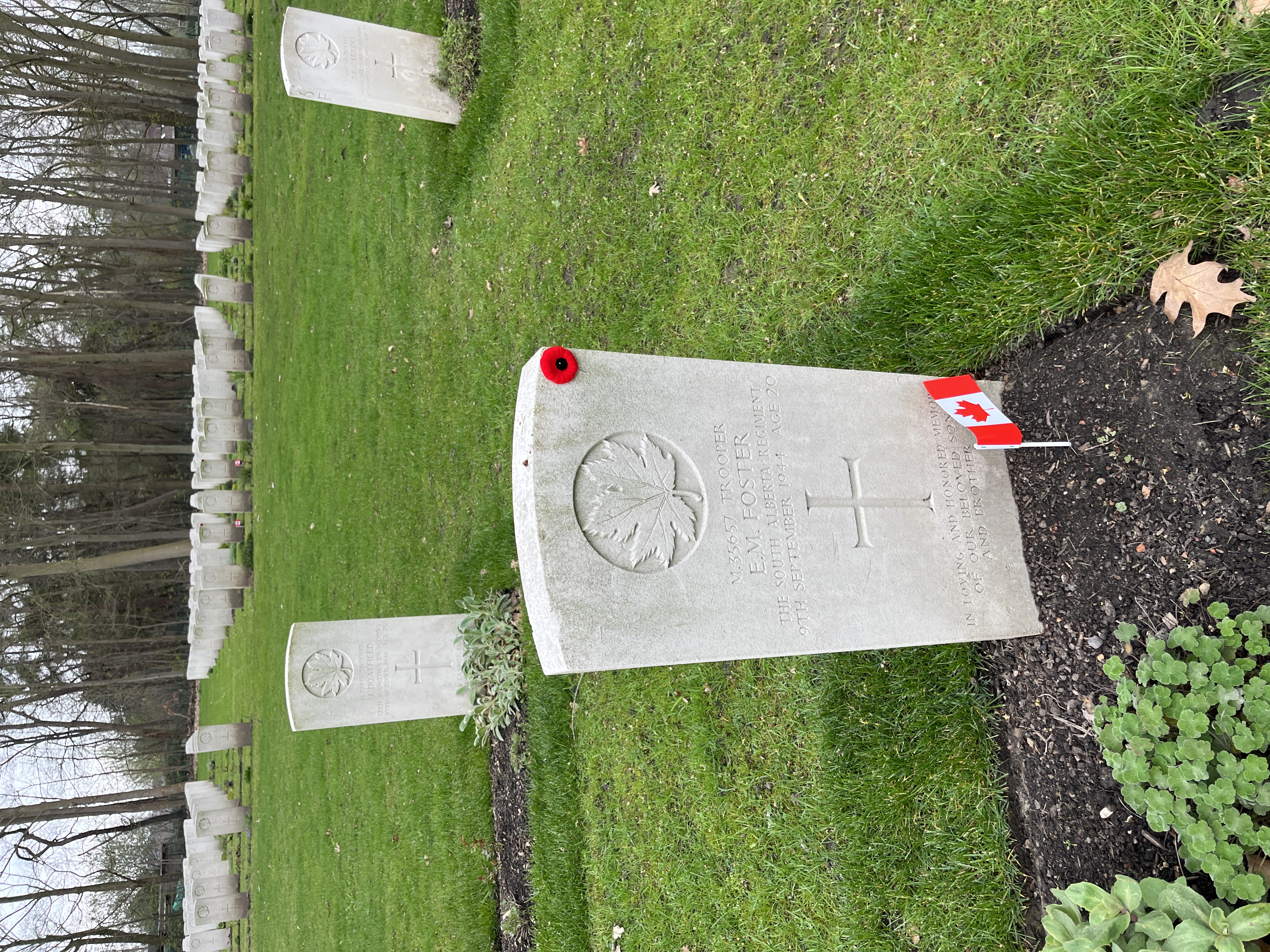 The National Combattants Association (N.S.B.) Sector of Loppen, (near Zedelgem, Belgium) have erected a Memorial Stone in memory of Trooper Erle M. Foster of the South Alberta Regiment and Sgt Eric A. Holton of the 15th Canadian Field Regiment. The memorial was unveiled at a special commemorative ceremony on June 15, 2002.