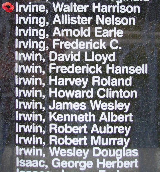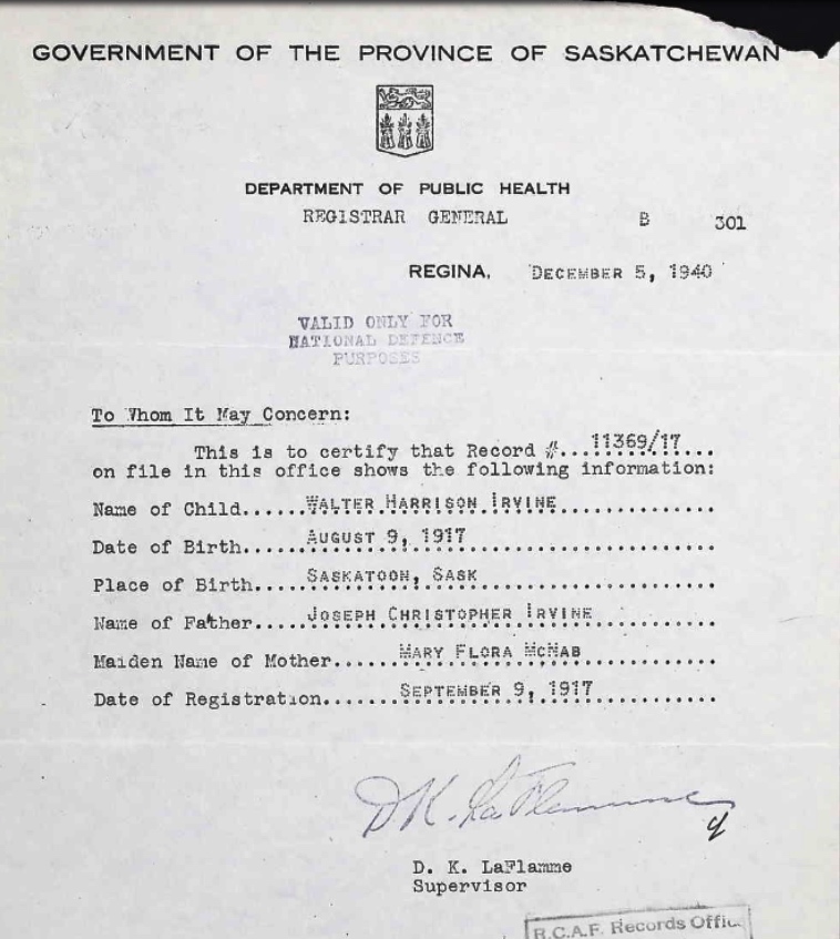 Son of Joseph Christopher and Mary F. Irvine, of Saskatoon, Saskatchewan, Canada.
