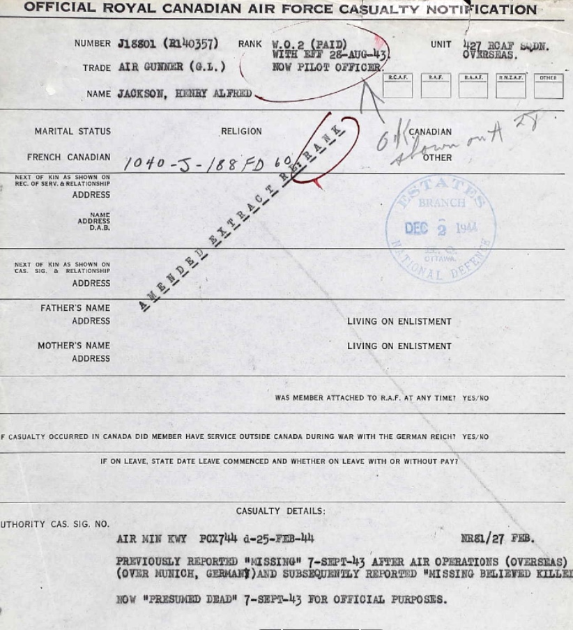 Digital gallery of Pilot Officer Henry Alfred Jackson