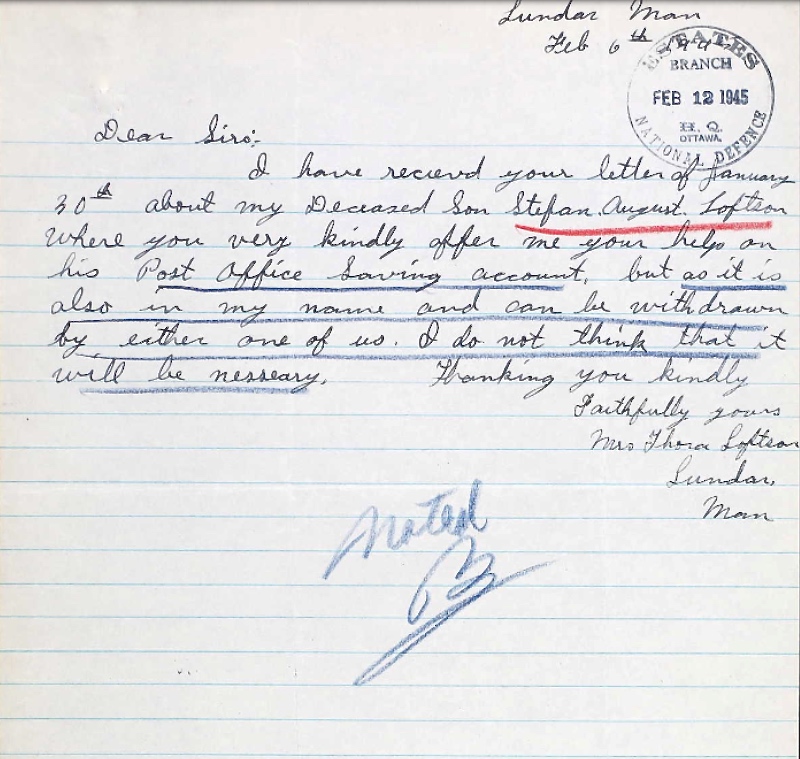 Son of Bjarni M. Loftson and Thora Loftson, of Lundar, Manitoba, Canada.
