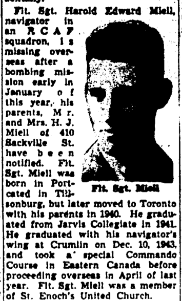 Son of Herman J. Miell and Ruby B. Miell, of Toronto, Ontario, Canada.