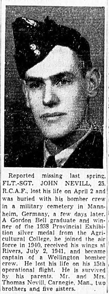 Son of Thomas Nevill, and of Henrietta Maria Nevill (nee Varrelman). Silver Medallist, Manitoba Agricultural College.