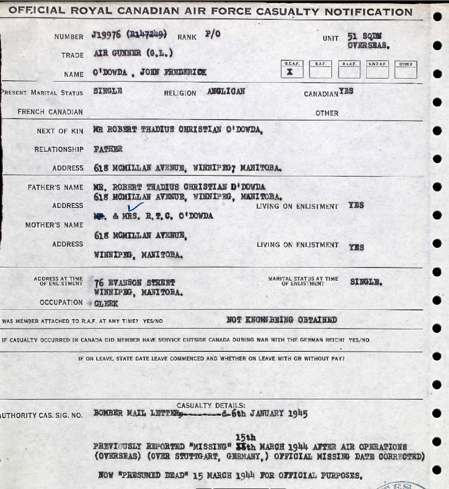 Digital gallery of Pilot Officer John Frederick O'Dowda