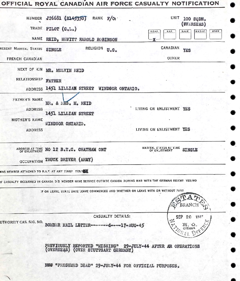 Digital gallery of Flying Officer Hewitt Harold Robinson Reid