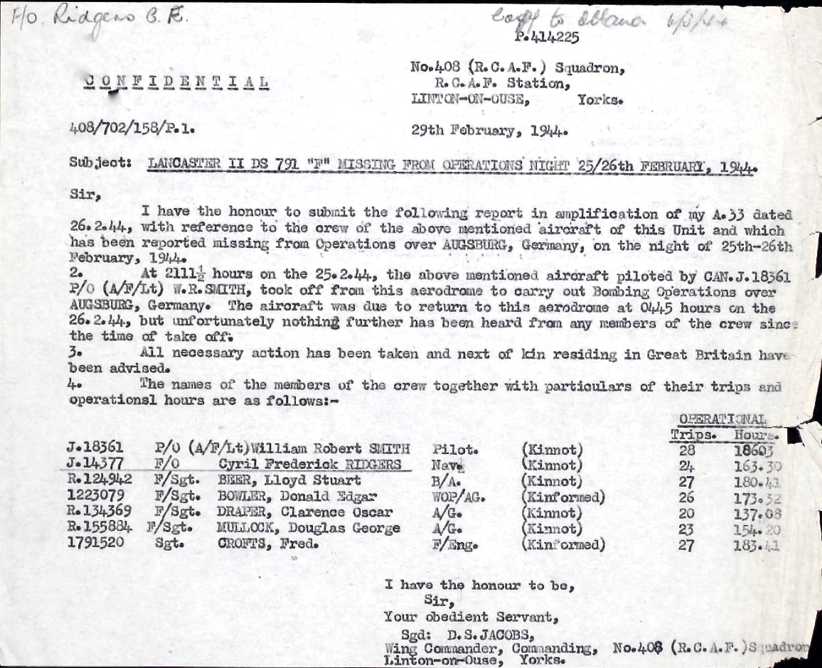 Son of Frederick George and Minnie Maria Ridgers, of Hamilton, Ontario, Canada.