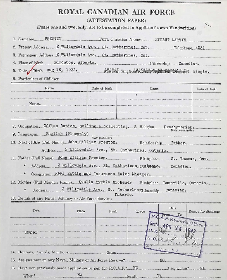 Digital gallery of Flying Officer Stuart Marvin Preston
