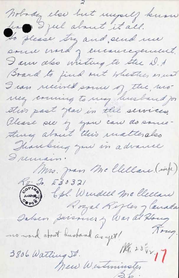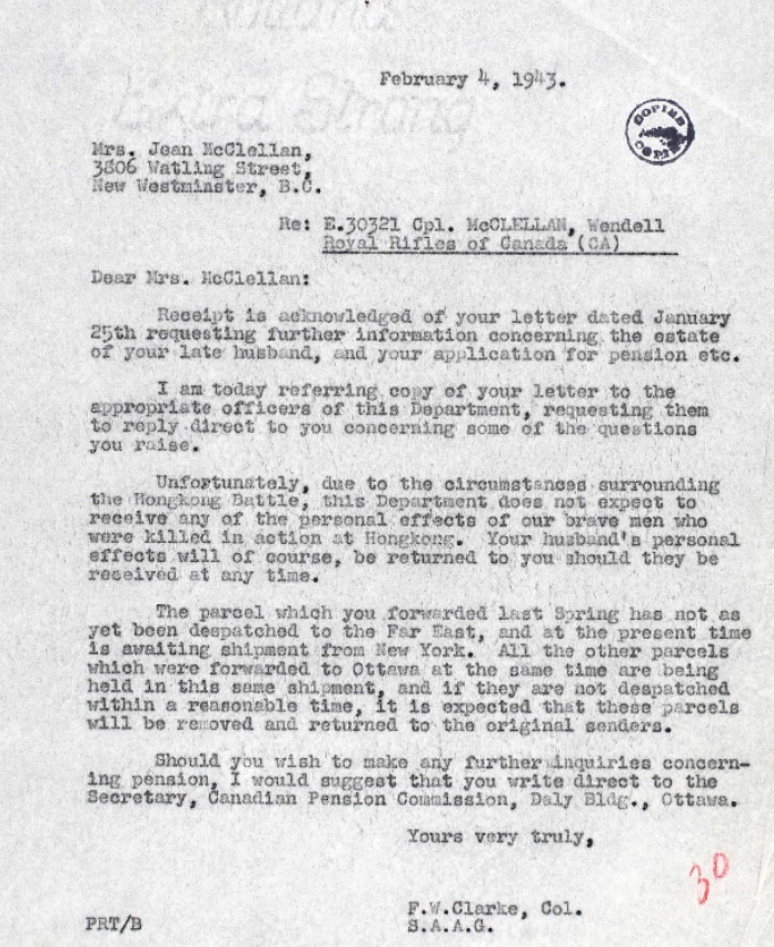 His brother, Private Willard Weston McClellan, served in Europe during the Second World War with the Signals Highlanders of Canada and survived the war.