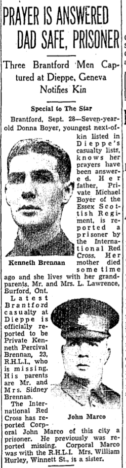 The names of over 200 Canadians are remembered on the Brookwood Memorial. Some perished in ships that were sunken in waters outside the territorial limits of any major campaign; some were lost overboard; some died from various causes on hospital ships or troop transports and were given burial at sea. Also commemorated are those who died during the campaign in Norway in 1940, and in raids on enemy-occupied territory in Europe, including the costly operation against Dieppe in August 1942.