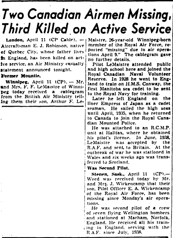 Son of Frederick F. and Edith Hariott Le Maistre, of Winnipeg, Manitoba.