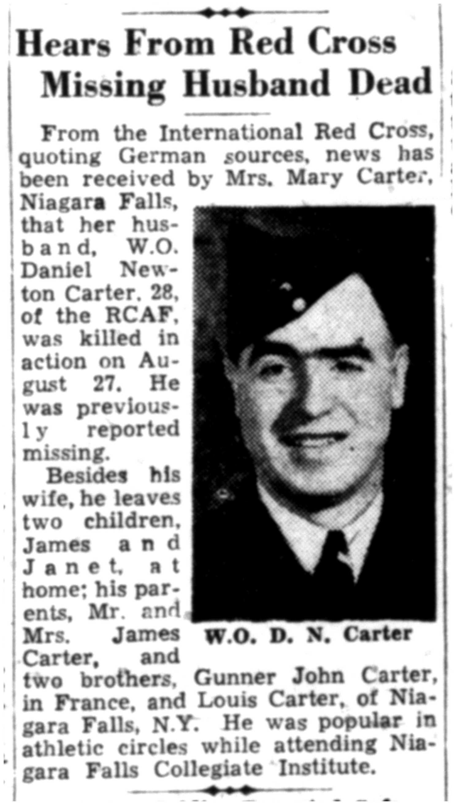 Son of James Daniel and Alice Wilson Carter, of Niagara Falls, Ontario. Husband of Mary Mavis Lillian Carter, of Niagara Falls.