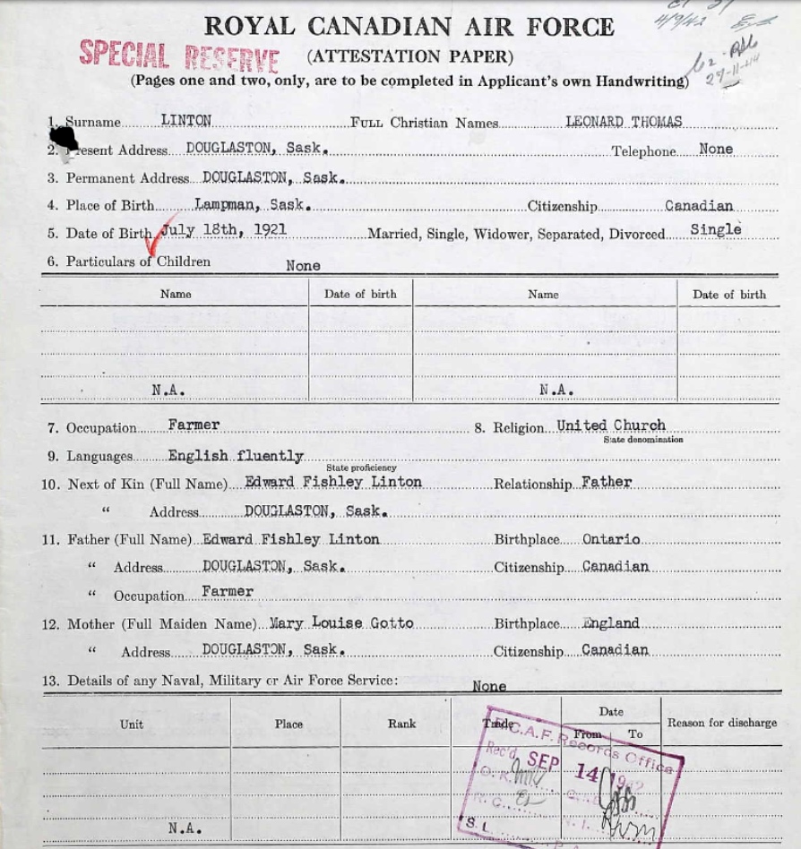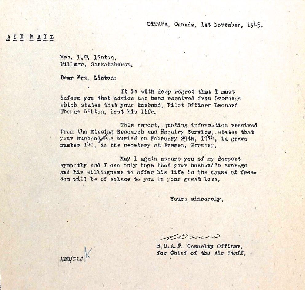 Digital gallery of Pilot Officer Leonard Thomas Linton