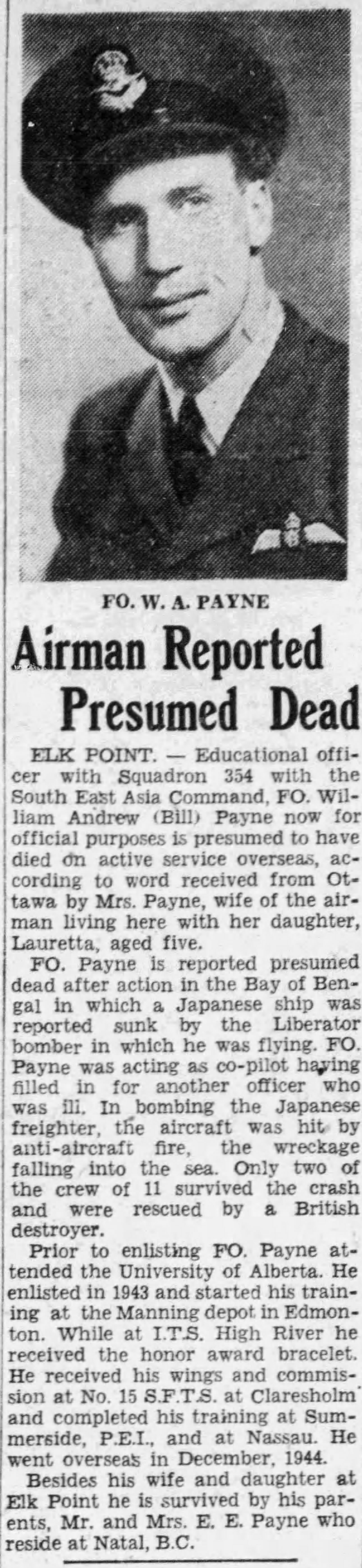 Digital gallery of Flying Officer William Andrew Boyd Payne
