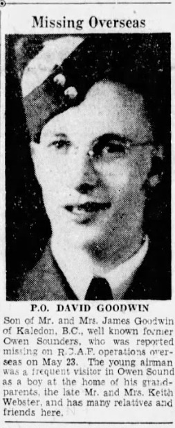 Son of James Cameron and Jessie Ann (née Webster) of Kaledon, British Columbia. Husband of Irene Buelah and father of Sharon Ann born 1 January 1944 of Kaledon, British Columbia. Brother of Mary and uncle of David Warner.