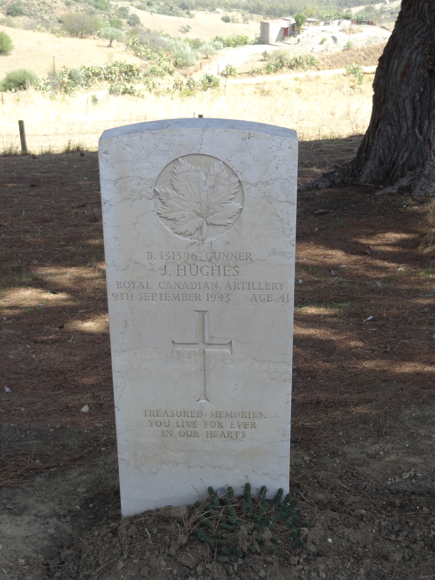 On 10 July 1943, following the successful conclusion of the north African campaign in mid May, a combined allied force of 160,000 Commonwealth and American troops invaded Sicily as a prelude to the assault on mainland Italy. The Italians, who would shortly make peace with the Allies and re-enter the war on their side, offered little determined resistance but German opposition was vigorous and stubborn. The campaign in Sicily came to an end on 17 August when the two allied forces came together at Messina, but failed to cut off the retreating Axis lines. Agira was taken by the 1st Canadian Division of 28 July and the site for the war cemetery was chosen in September for the burial of all Canadians who had been killed in the Sicily campaign. Agira Canadian War Cemetery contains 491 Commonwealth burials of the Second World War.