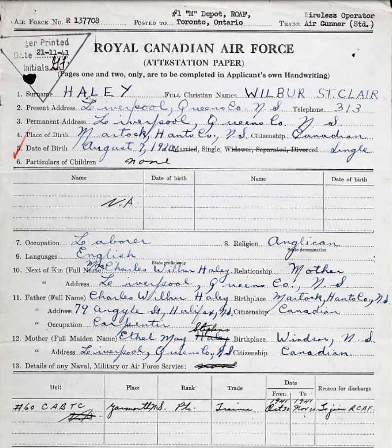 Enlistment: November 21, 1941 Nova Scotia