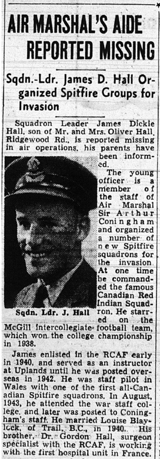 Son of Oliver and Anne Hall of Toronto, Ontario. Husband of Kathleen Louise Hall (nee Blaylock) of Trail British Columbia.
