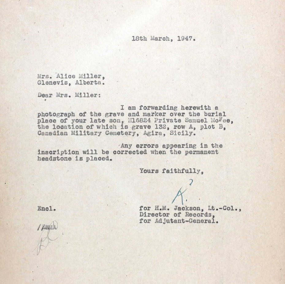 On 10 July 1943, following the successful conclusion of the north African campaign in mid May, a combined allied force of 160,000 Commonwealth and American troops invaded Sicily as a prelude to the assault on mainland Italy. The Italians, who would shortly make peace with the Allies and re-enter the war on their side, offered little determined resistance but German opposition was vigorous and stubborn. The campaign in Sicily came to an end on 17 August when the two allied forces came together at Messina, but failed to cut off the retreating Axis lines. Agira was taken by the 1st Canadian Division of 28 July and the site for the war cemetery was chosen in September for the burial of all Canadians who had been killed in the Sicily campaign. Agira Canadian War Cemetery contains 491 Commonwealth burials of the Second World War.