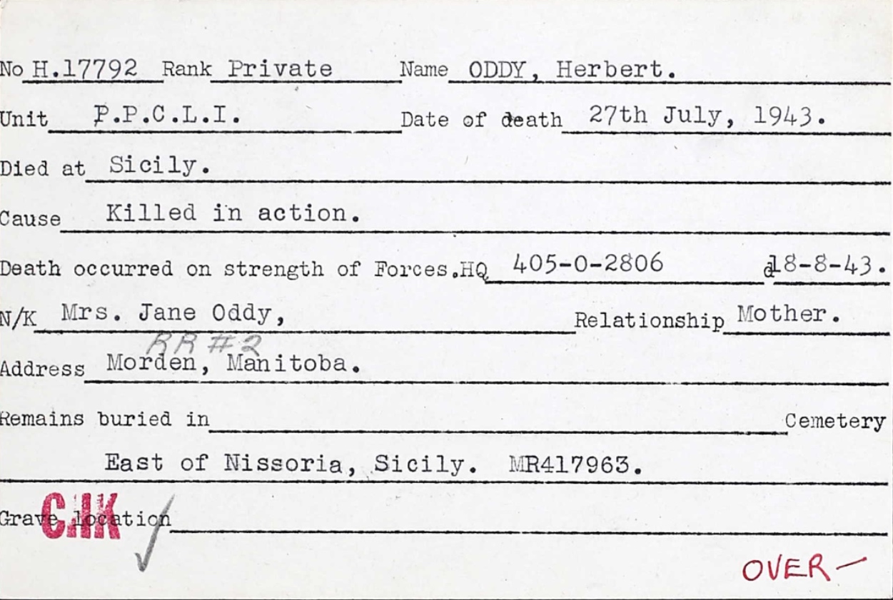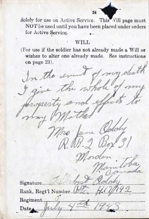 Son of Jane Oddy, of Thornhill, Manitoba.