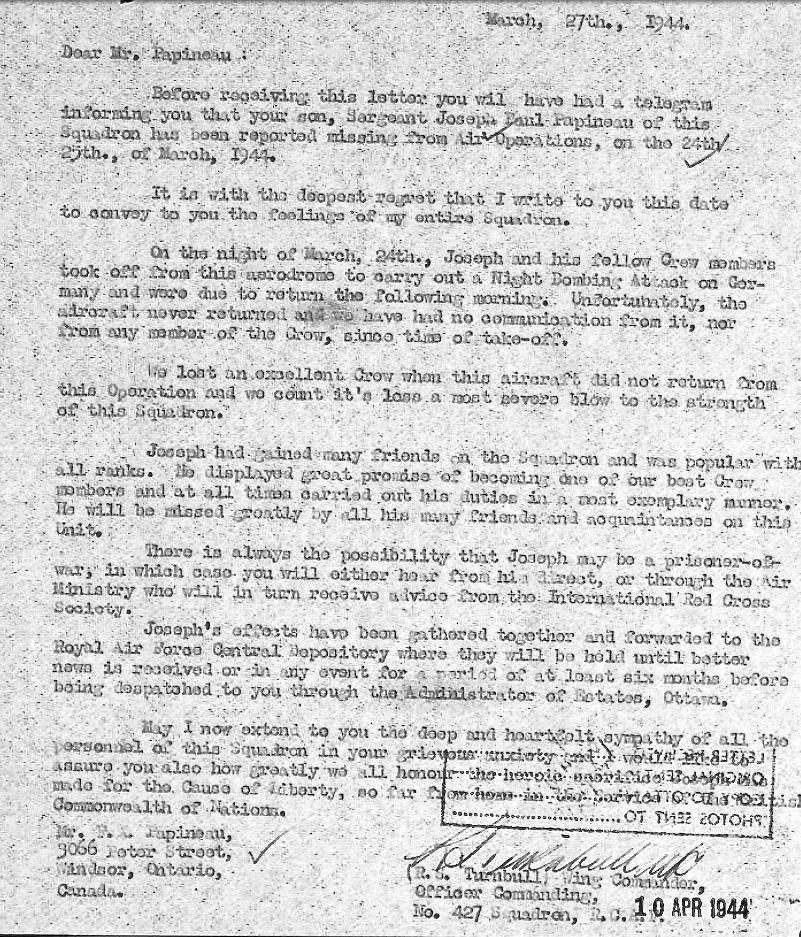 Digital gallery of Pilot Officer Joseph Paul Papineau