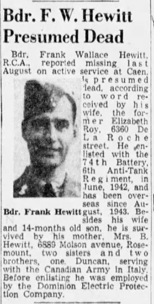 Son of David Hewitt and of Beatrice Hewitt (nee Smith); husband of Elizabeth H. Hewitt (nee Roy), of Montreal, Quebec.