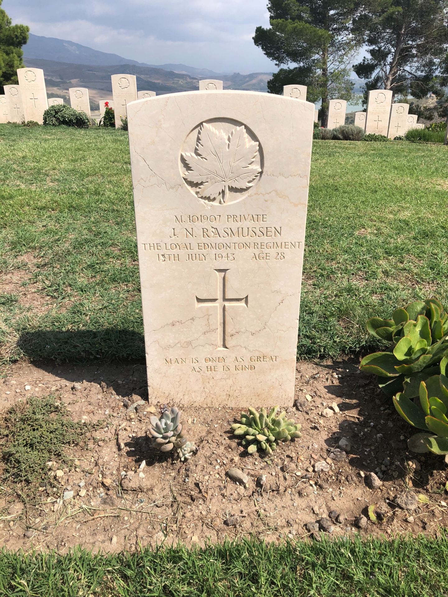 On 10 July 1943, following the successful conclusion of the north African campaign in mid May, a combined allied force of 160,000 Commonwealth and American troops invaded Sicily as a prelude to the assault on mainland Italy. The Italians, who would shortly make peace with the Allies and re-enter the war on their side, offered little determined resistance but German opposition was vigorous and stubborn. The campaign in Sicily came to an end on 17 August when the two allied forces came together at Messina, but failed to cut off the retreating Axis lines. Agira was taken by the 1st Canadian Division of 28 July and the site for the war cemetery was chosen in September for the burial of all Canadians who had been killed in the Sicily campaign. Agira Canadian War Cemetery contains 491 Commonwealth burials of the Second World War.