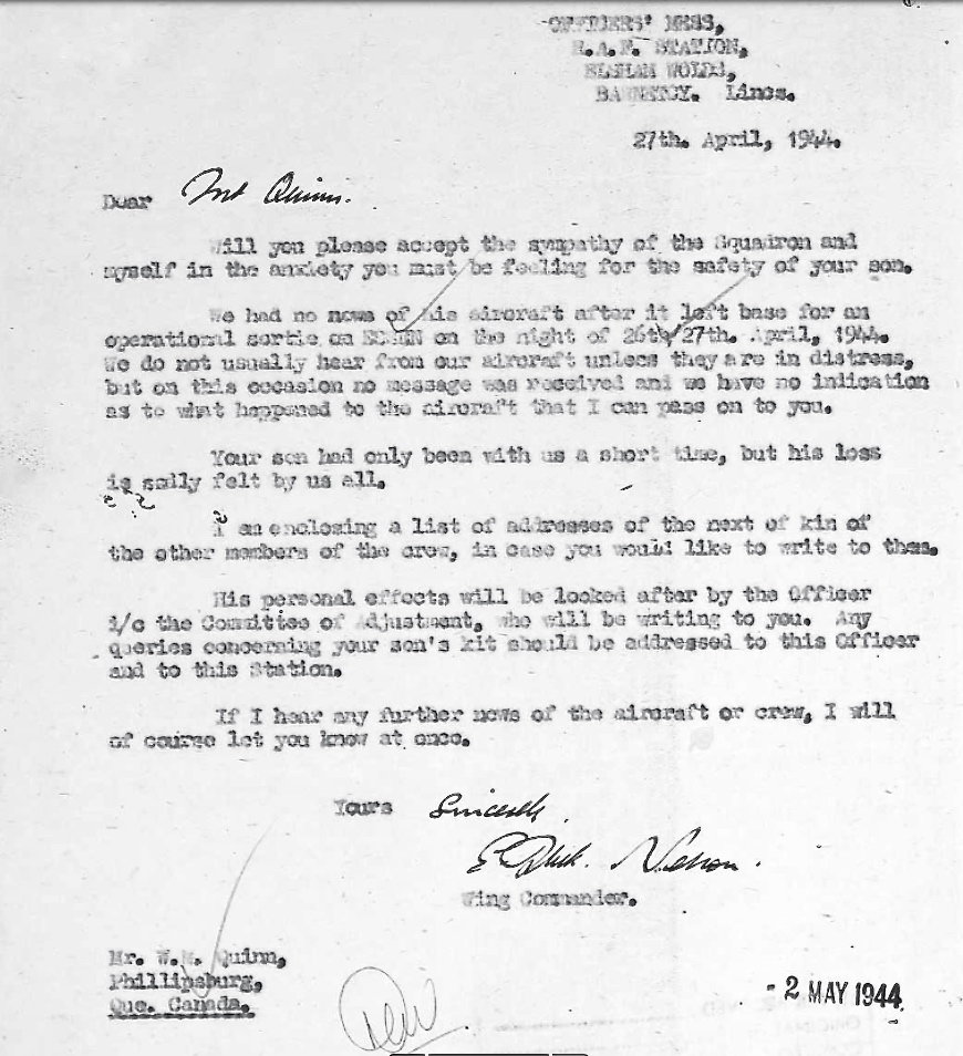 Son of William Morgan Quinn and Rose Anne Quinn, of Philipsburg, Quebec.