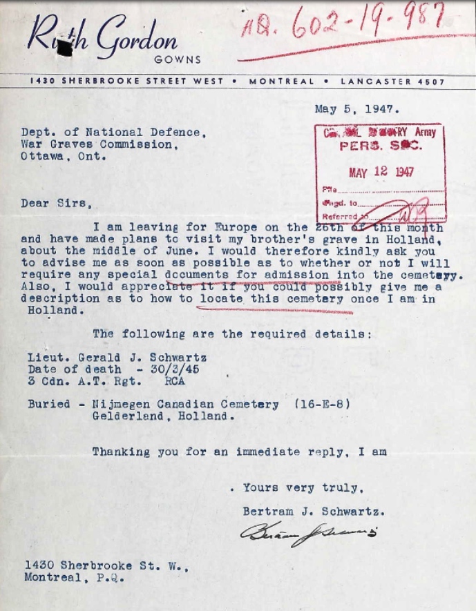 Son of Lorne and Ruth Schwartz, of Montreal, Province of Quebec.