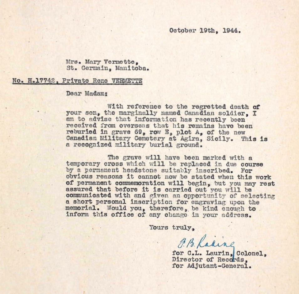 Son of Joachim and Marie Vermette, of St. Germain, Manitoba.