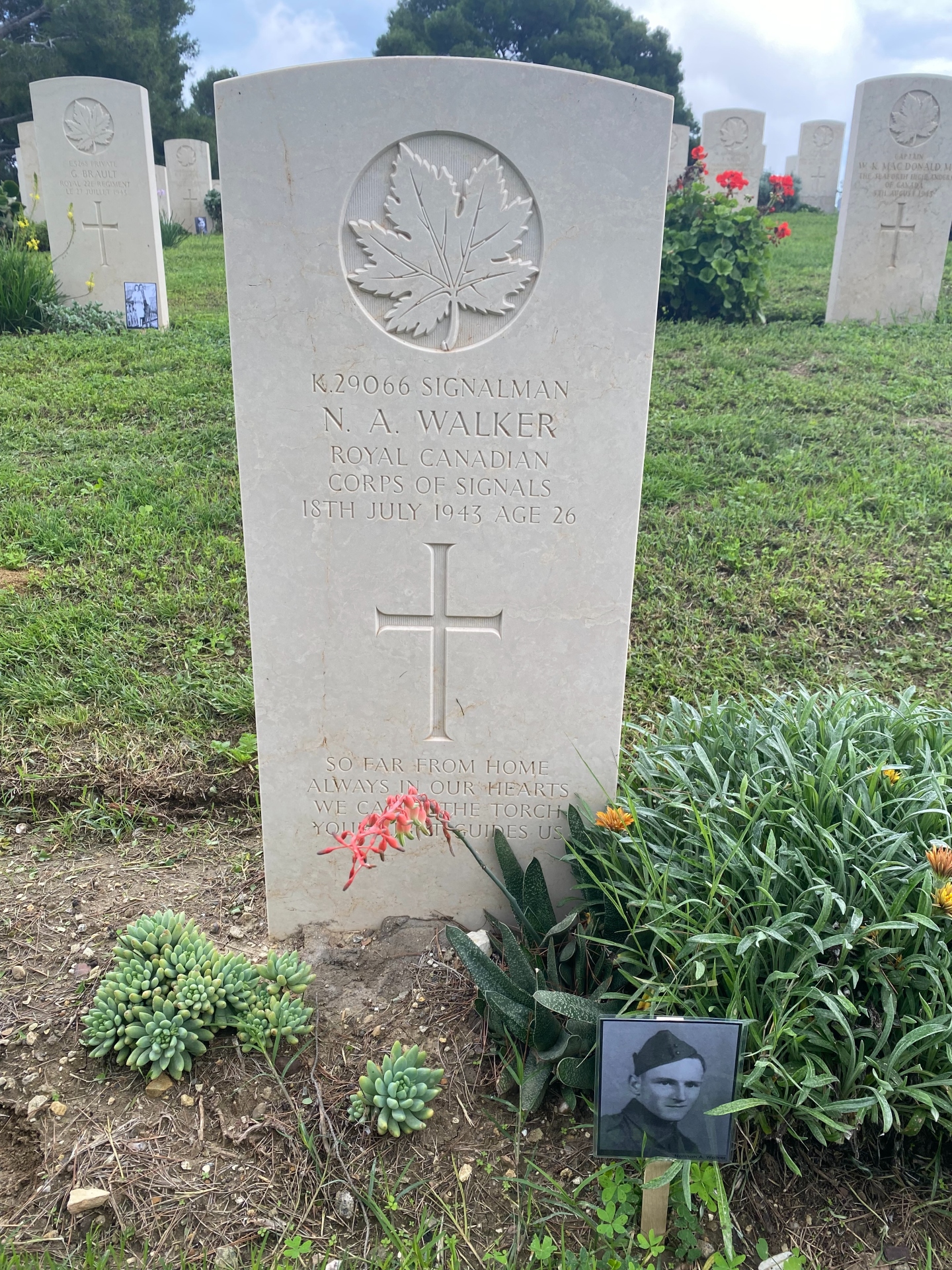 On 10 July 1943, following the successful conclusion of the north African campaign in mid May, a combined allied force of 160,000 Commonwealth and American troops invaded Sicily as a prelude to the assault on mainland Italy. The Italians, who would shortly make peace with the Allies and re-enter the war on their side, offered little determined resistance but German opposition was vigorous and stubborn. The campaign in Sicily came to an end on 17 August when the two allied forces came together at Messina, but failed to cut off the retreating Axis lines. Agira was taken by the 1st Canadian Division of 28 July and the site for the war cemetery was chosen in September for the burial of all Canadians who had been killed in the Sicily campaign. Agira Canadian War Cemetery contains 491 Commonwealth burials of the Second World War.
