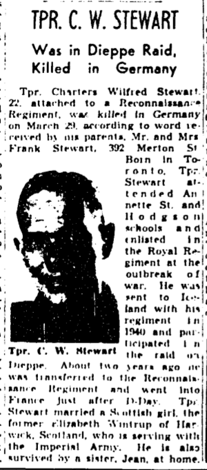 Son of Frank E. and Ruby I. Stewart, of Toronto, Ontario; husband of Eliza Stewart.