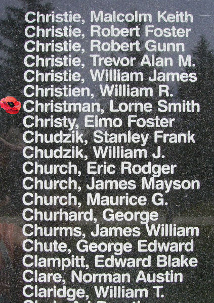 Son of Otto Lorne and Alice Christman, of Orillia, Ontario, Canada.