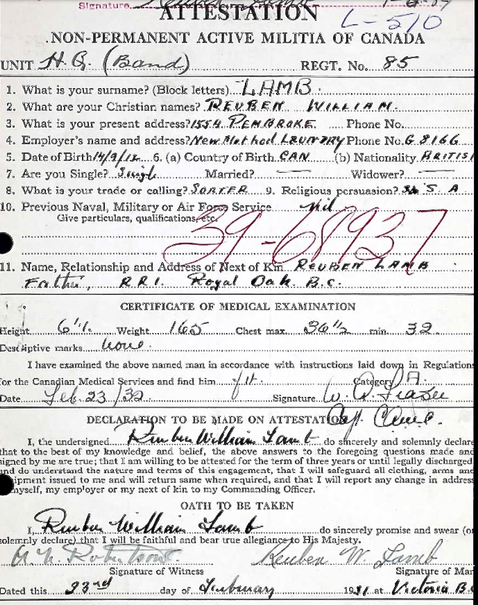 Son of Reuben and Myfanwy Lamb; husband of M. Jean Lamb, of Victoria, British Columbia.