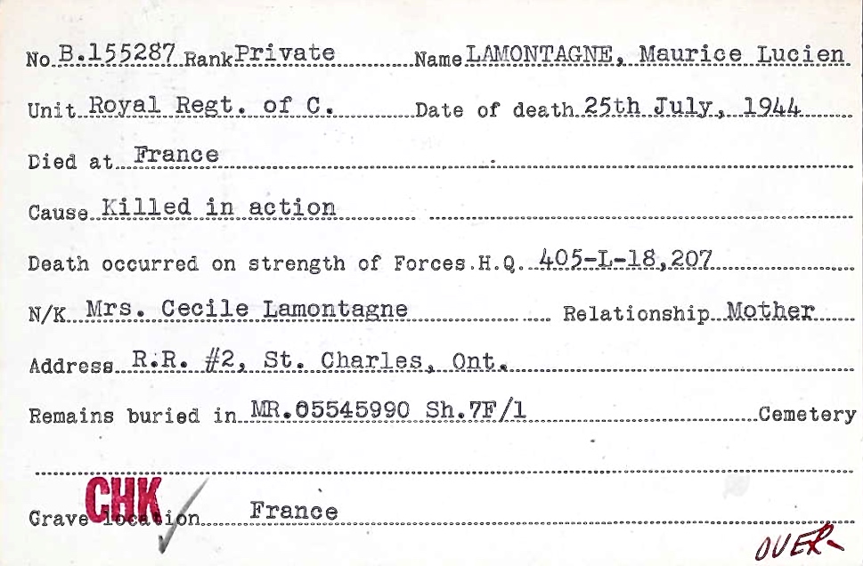 Son of Alexandre and Cecile Lamontagne, of St. Charles, Ontario.
