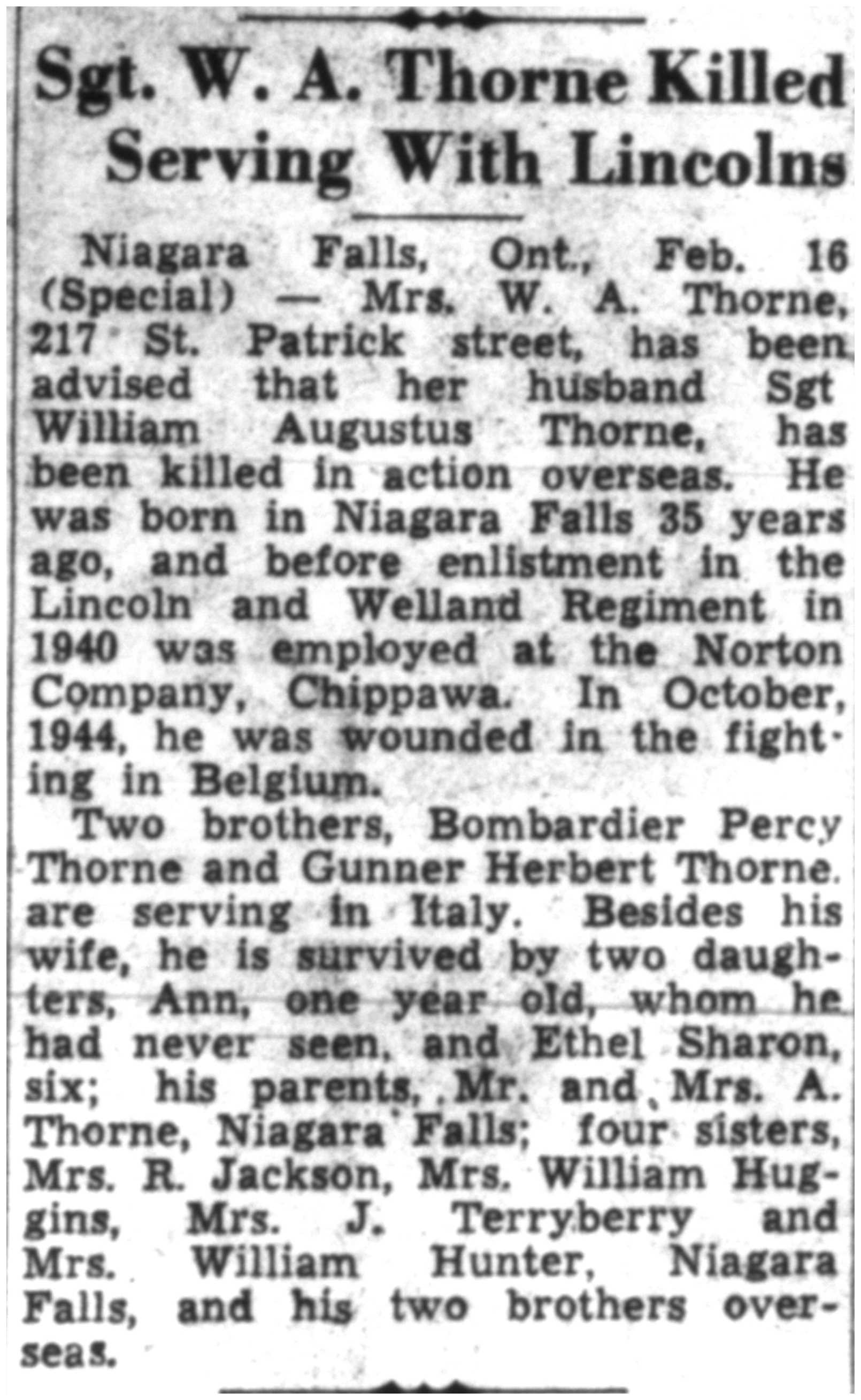 Digital gallery of Sergeant William Augustus Thorne