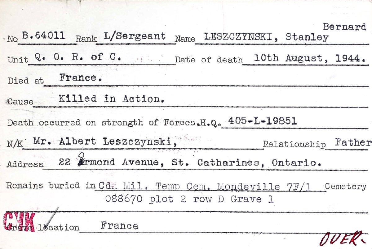 Son of Albert and Mary Leszczynski, of St. Catharines, Ontario.