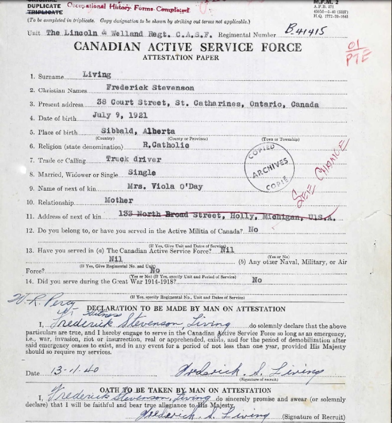 Digital gallery of Private Frederick Stevenson Living