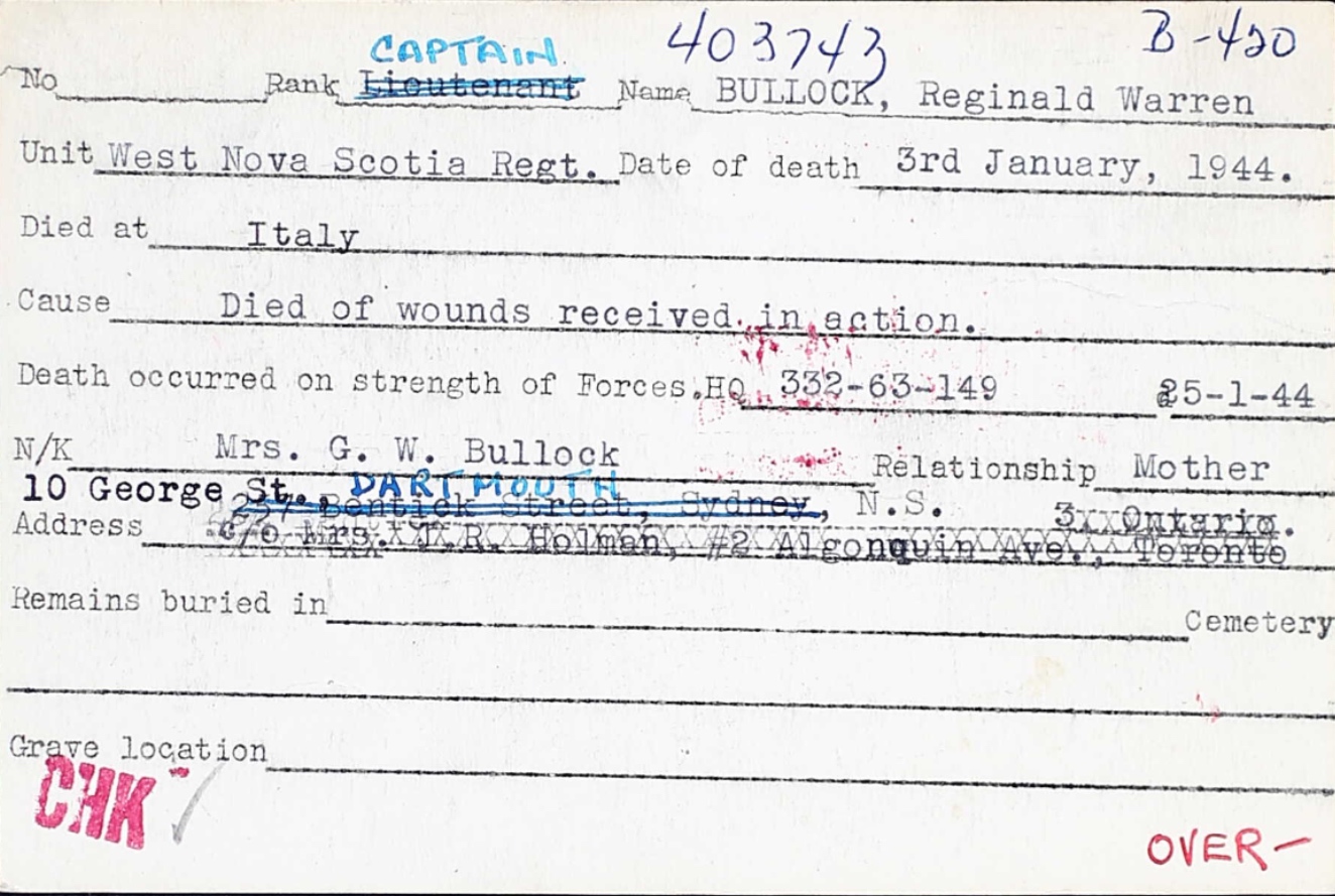 Unit/Regiment: West Nova Scotia Regiment, R.C.I.C.