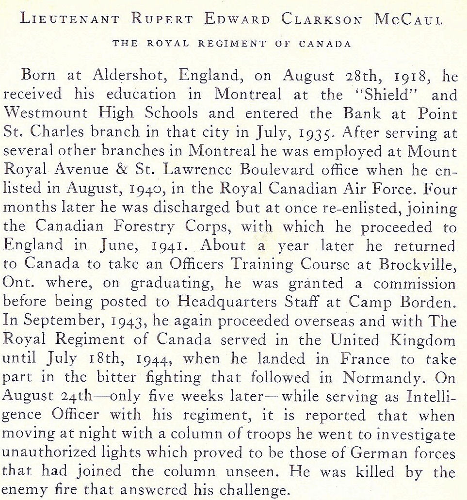 Son of Maj. Alan Clarkson McCaul and Muriel Everard Ffolkes McCaul, of Toronto, Ontario.