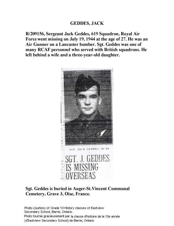 Son of George and Julia Ethel Geddes; husband of Mabel Elizabeth Geddes, of Bond Head, Ontario.