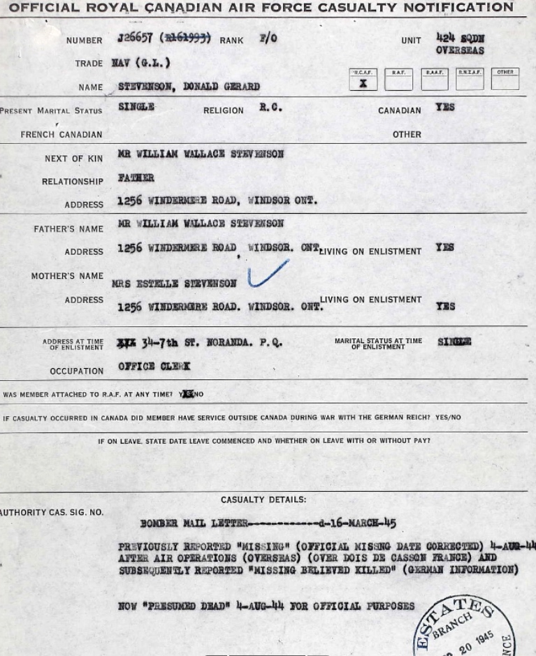 Digital gallery of Flying Officer Donald Gerald Stevenson